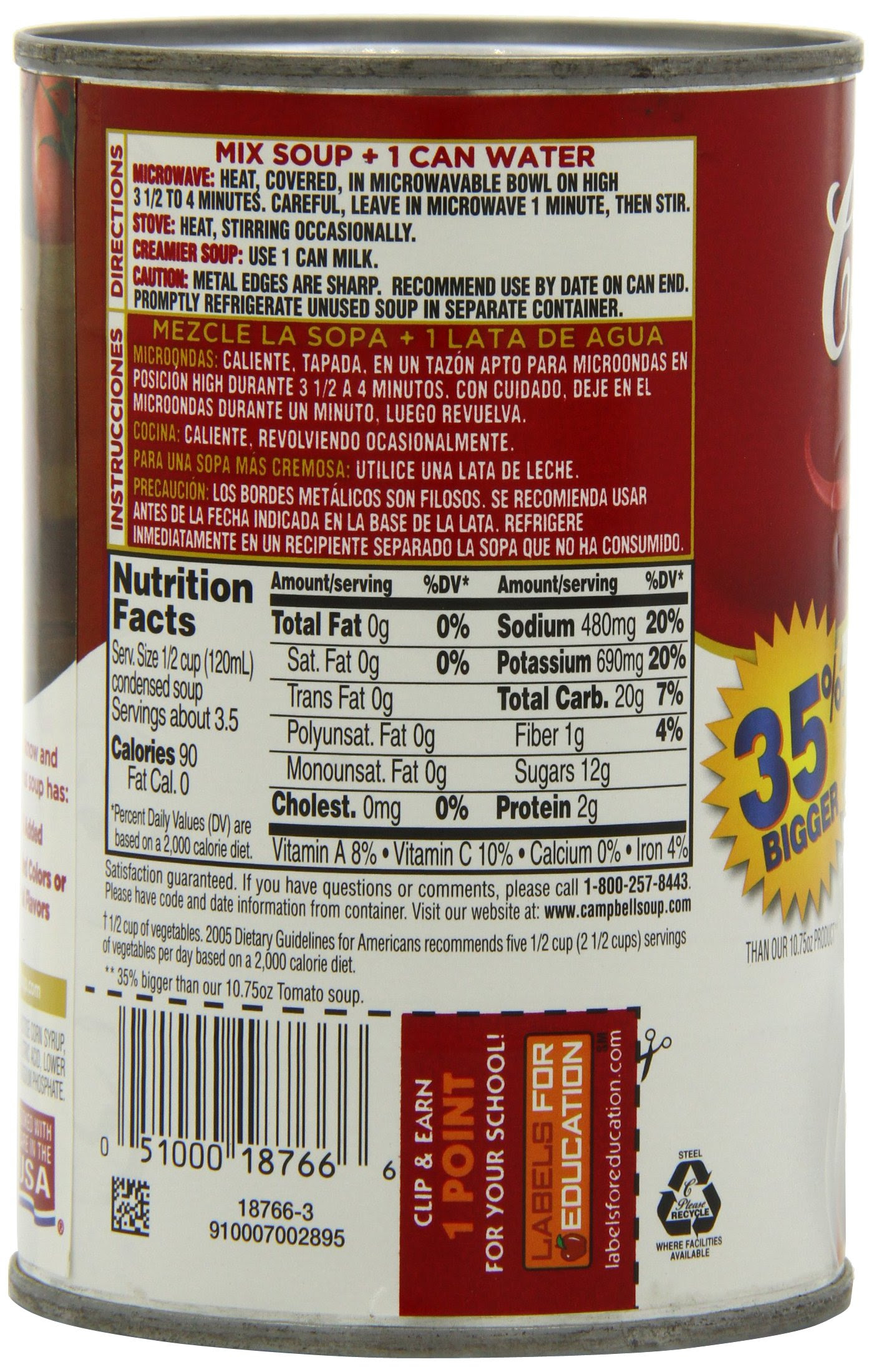 Processed soups, like many processed foods, contain large amounts of sodium. A 1/2-cup serving of the tomato soup supplies 480 mg of sodium. While the average American consumes 3,436 mg of sodium per day, the American Heart Association suggests an intake of 1,500 mg per day to decrease the risk of high blood pressure and heart disease. Campbell’s uses lower sodium sea salt in addition to regular salt in this product, according to the nutritional label.
